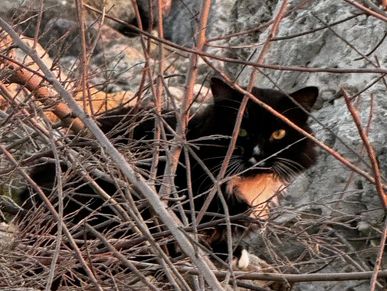 We practice TNR (trap-neuter-return) in our colonies, neutering/spaying and vaccinating unsocialized cats whose home is outdoors.